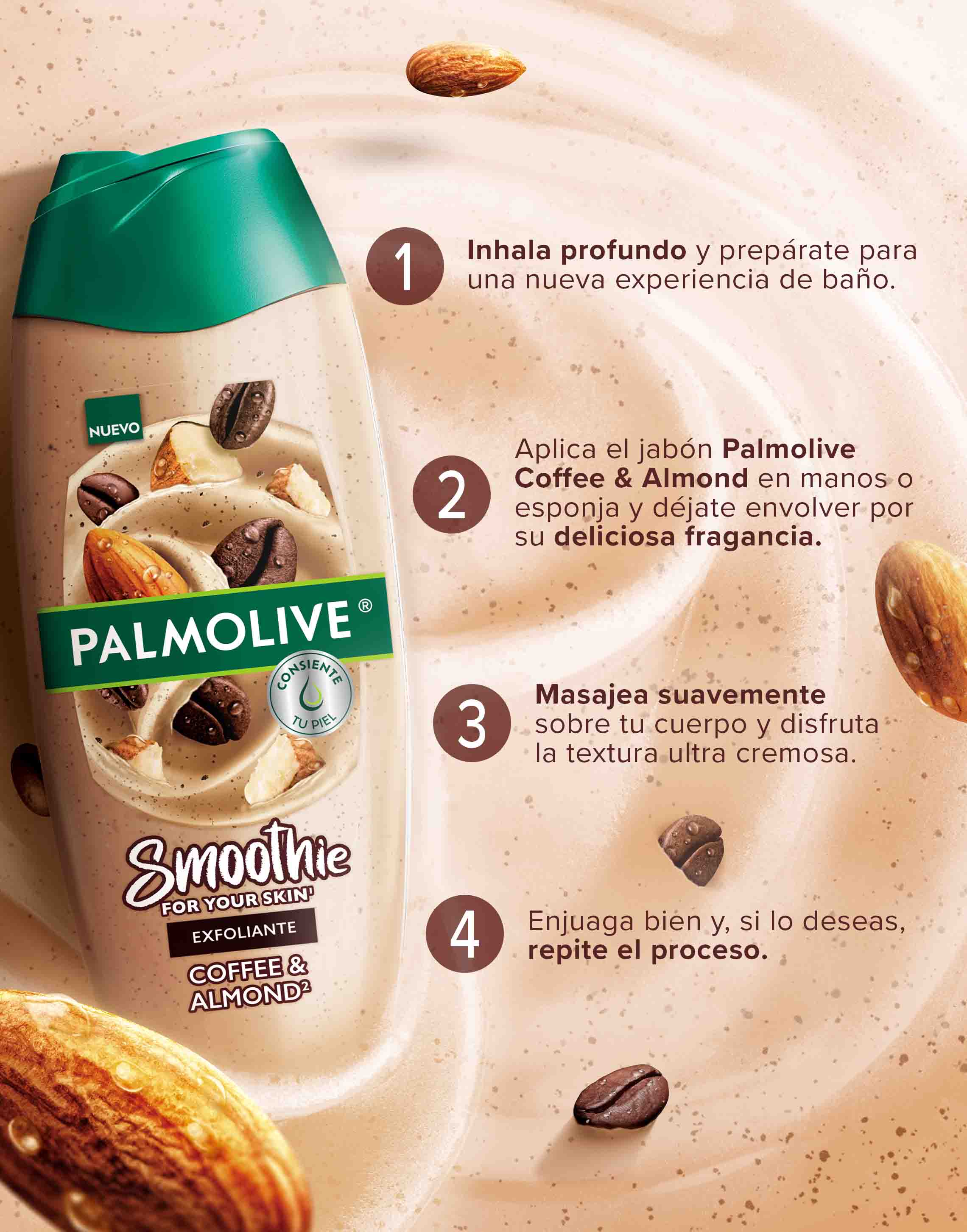 - Palmolive Smoothie Almond, Avocado & Milk Jabón líquido corporal Exfoliante 390mL